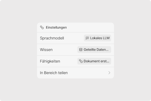 Mit Spaces können Teams und Abteilungen KI-Werkzeuge gemeinsam erstellen, bearbeiten und teilen – in einer sicheren Umgebung. Legen Sie Rollen fest, verwalten Sie Zugriffsrechte und steuern Sie, welche Modelle und Daten verwendet werden.